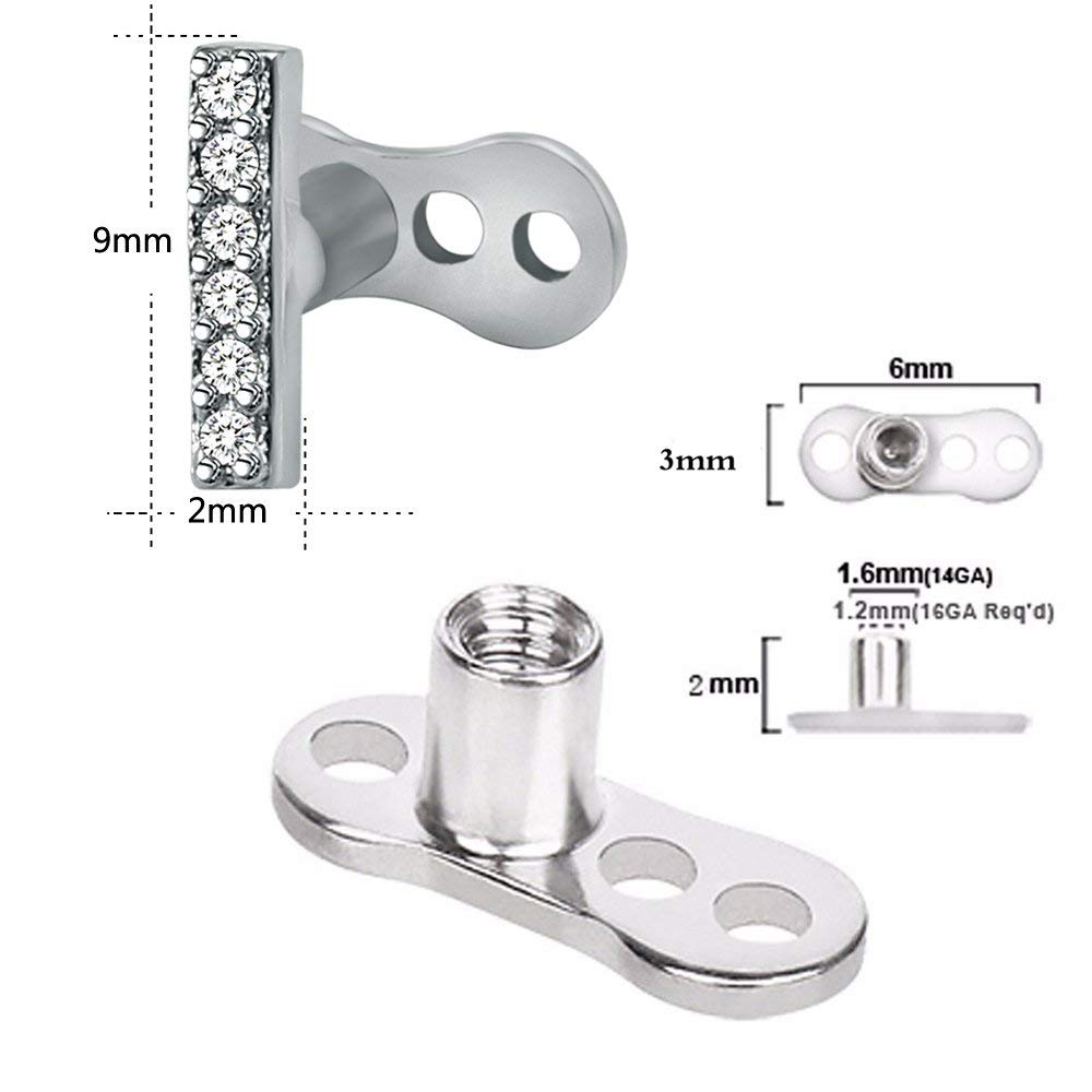 ZS 14g Cubic Zirconia Dermal Anchor Tops and Base Surgical Steel Microdermals Body Piercings—