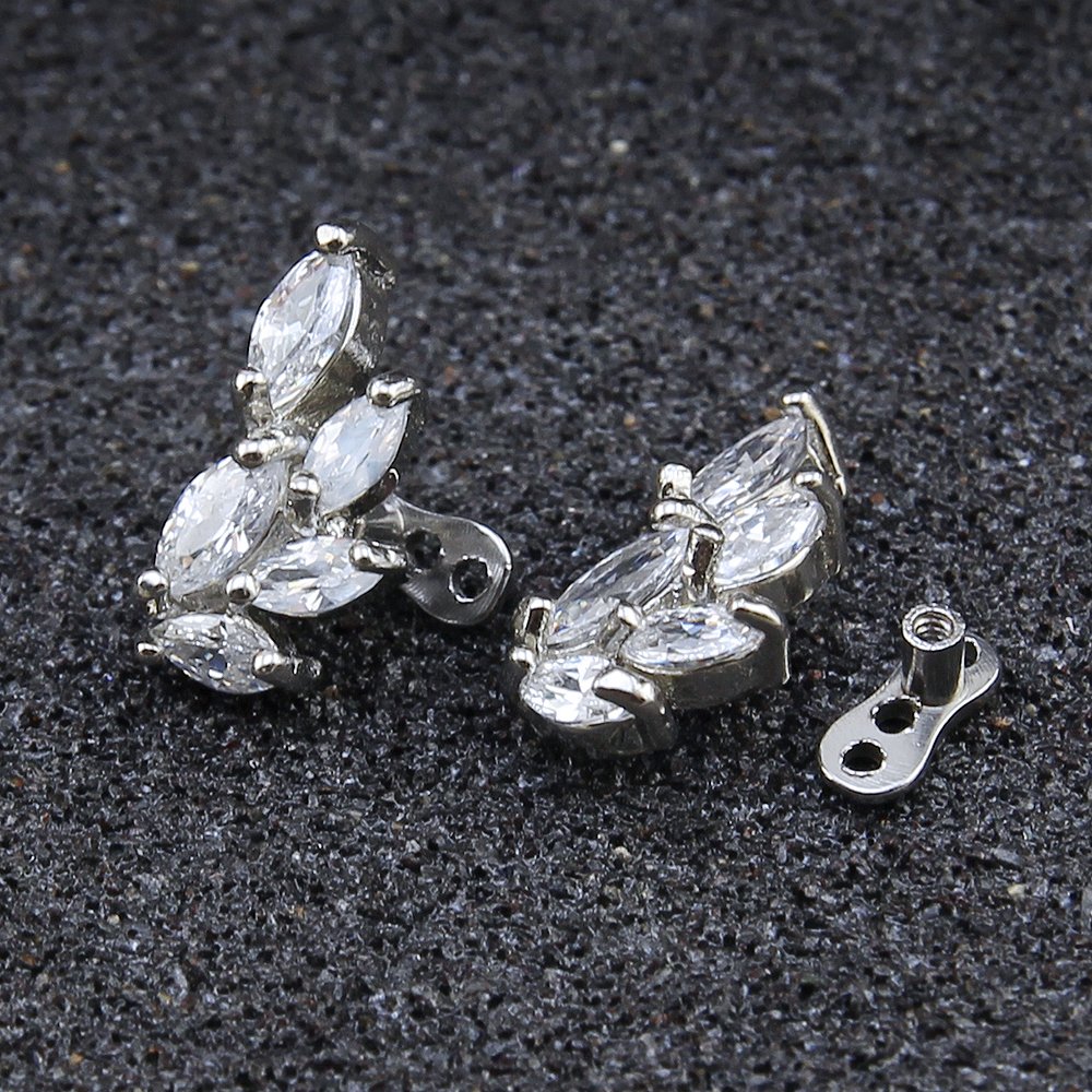 ZS 14g Cubic Zirconia Dermal Anchor Tops and Base Surgical Steel Microdermals Body Piercings