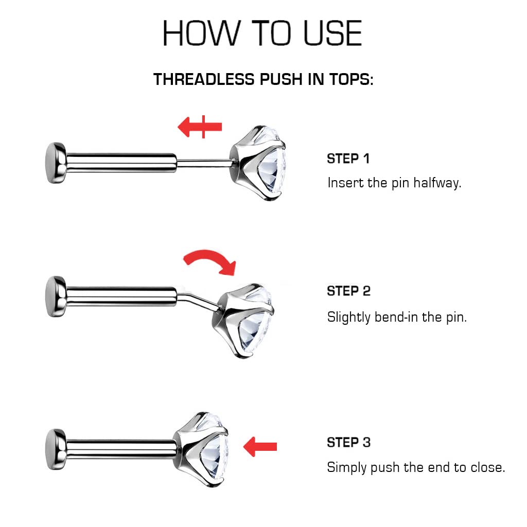 ZS 16G Stainless Steel Pushin Lip Rings, Colorful CZ Forward Helix Earring, Length 6/8/10mm Labret Monroe Medusa Piercing Jewelry for Women Men—