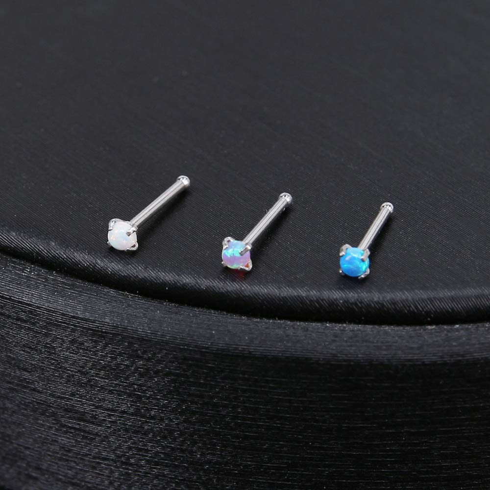 ZS 5 Pieces Opal Nose Studs 20 Gauge Nose Pin Blue Nose Piercing Stud Stainless Steel Nose Stud Retainer L-Shape