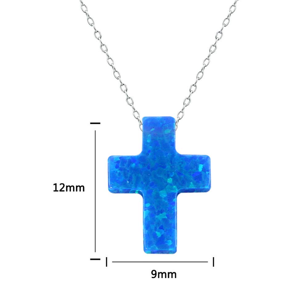 - Cherish your faith with this beautiful and dainty Blue opal cross necklace with 17.7 inch 925 sterling silver chain