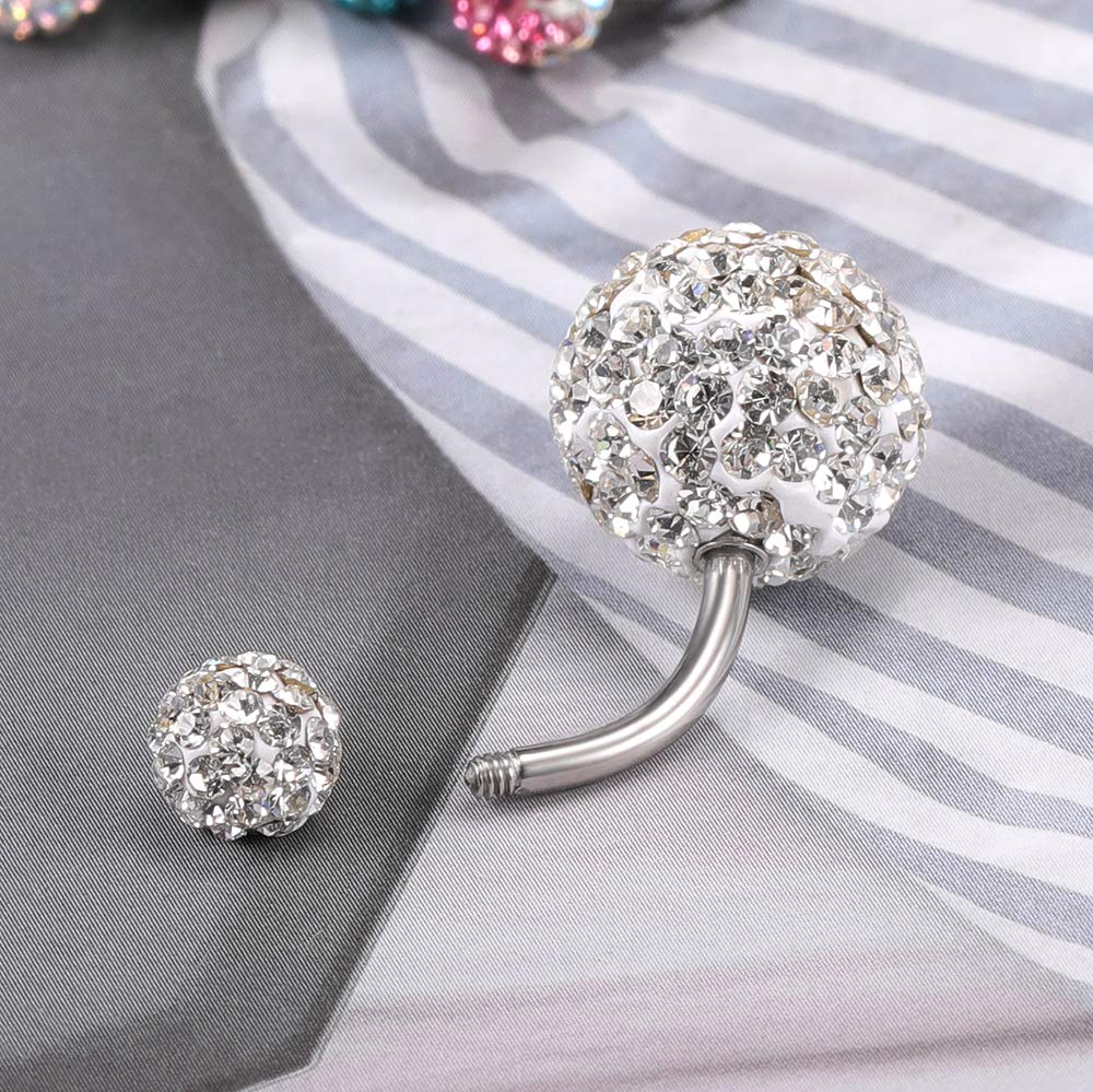 - Style: Curved barbell belly ring with multi crystal Gradual Color ball.